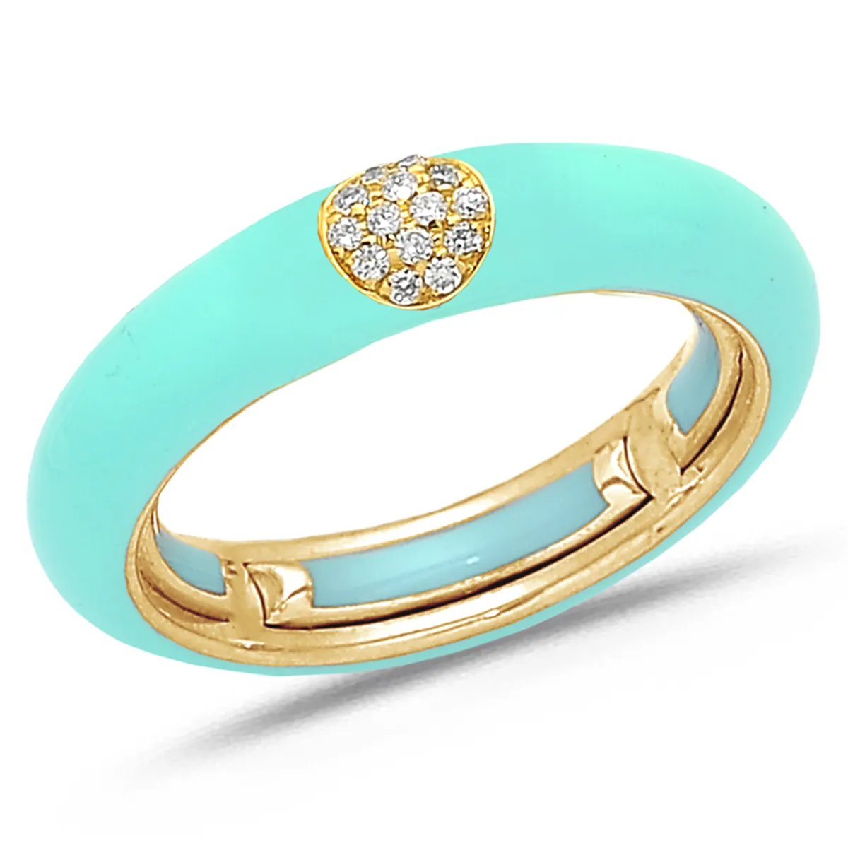 Bague Émail Bleu Clair sertie de Diamants 0.07ct. en Or 750 mill. Jaune