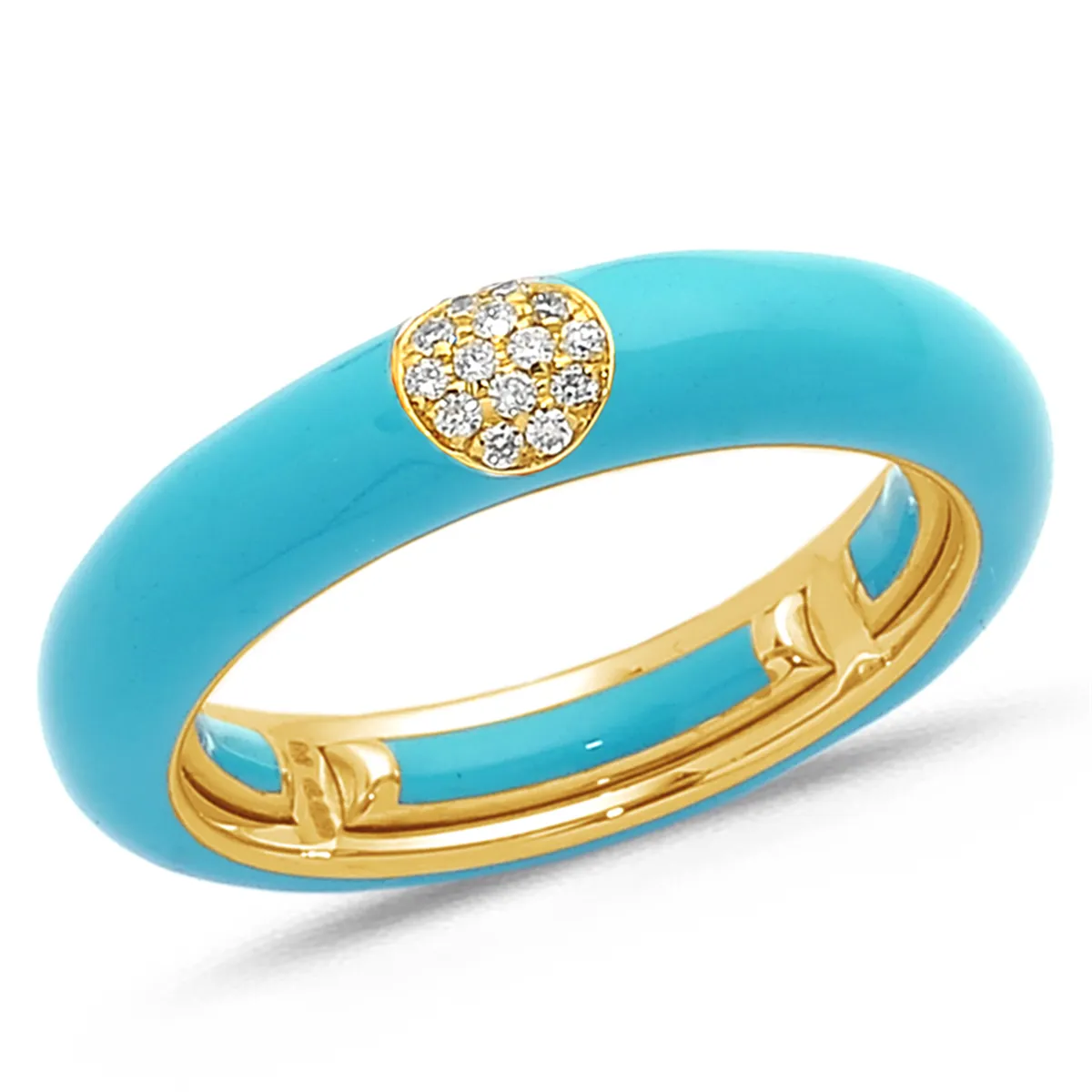 Bague Émail Turquoise sertie de Diamants 0.07ct. en Or 750 mill. Jaune