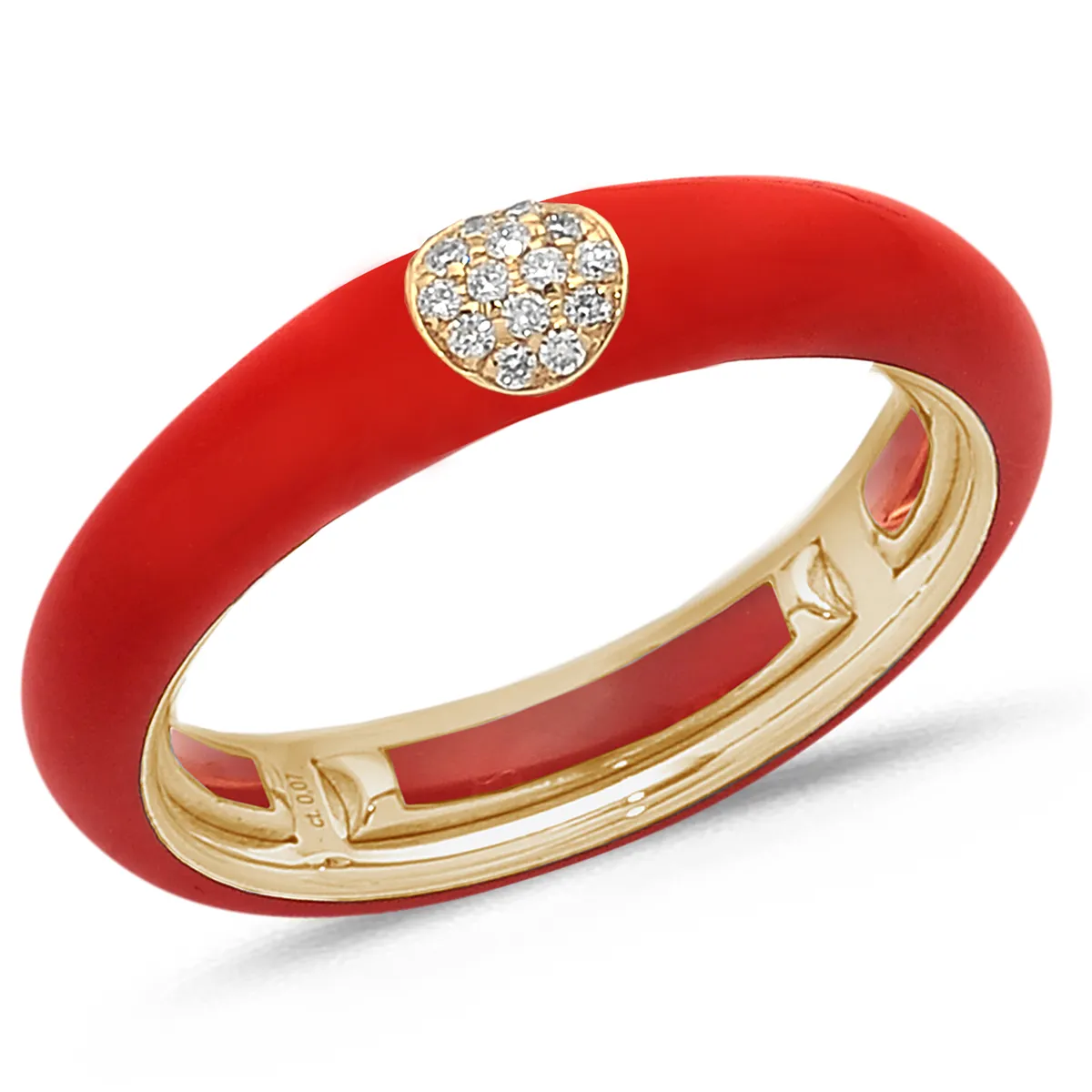 Bague Émail Rouge sertie de Diamants 0.07ct. en Or 750 mill. Rose