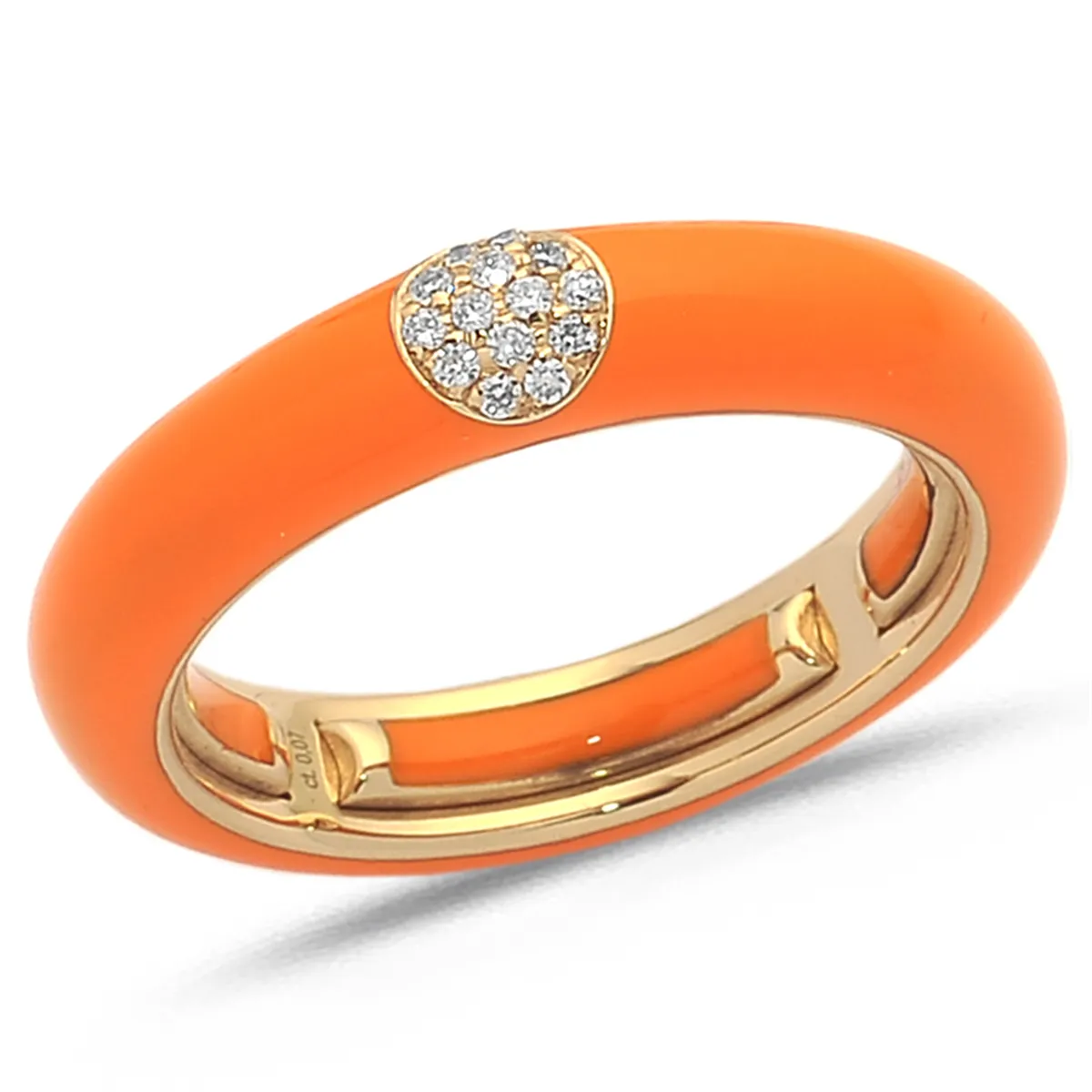 Bague Émail Orange sertie de Diamants 0.07ct. en Or 750 mill. Rose
