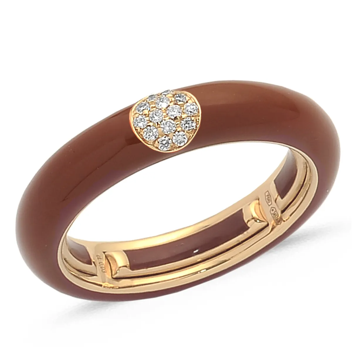 Bague Émail en or rose 750 mill. pavée de diamants.
