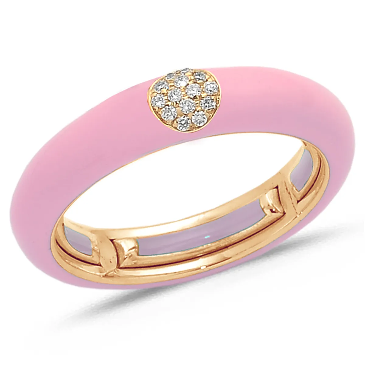 Bague Émail Rose sertie de Diamants 0.07ct. en Or 750 mill. Rose