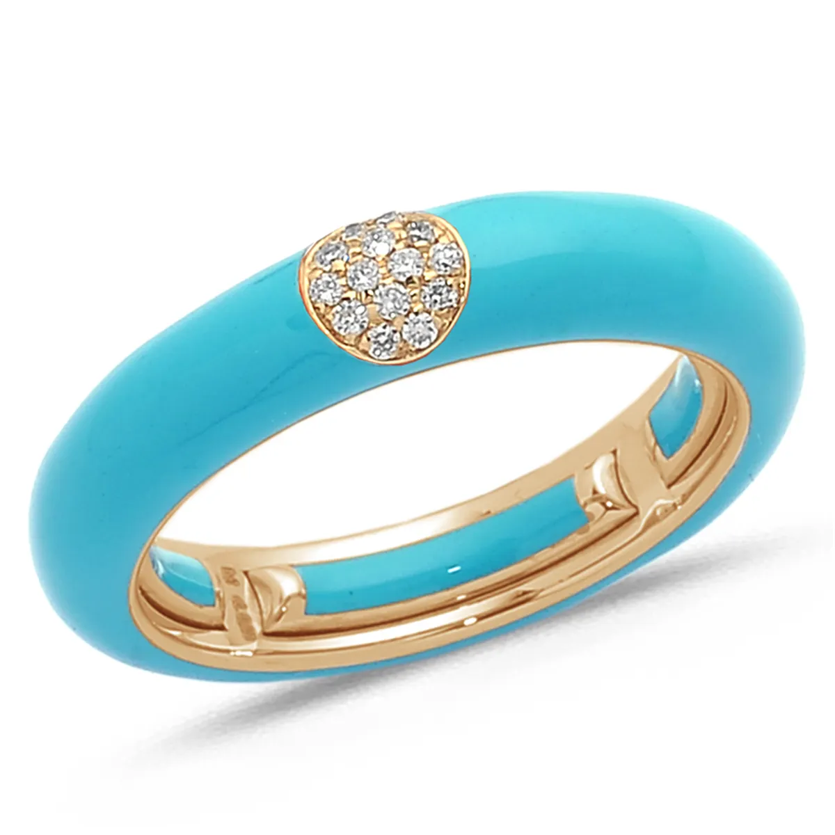 Bague Émail Turquoise sertie de Diamants 0.07ct. en Or 750 mill. Rose