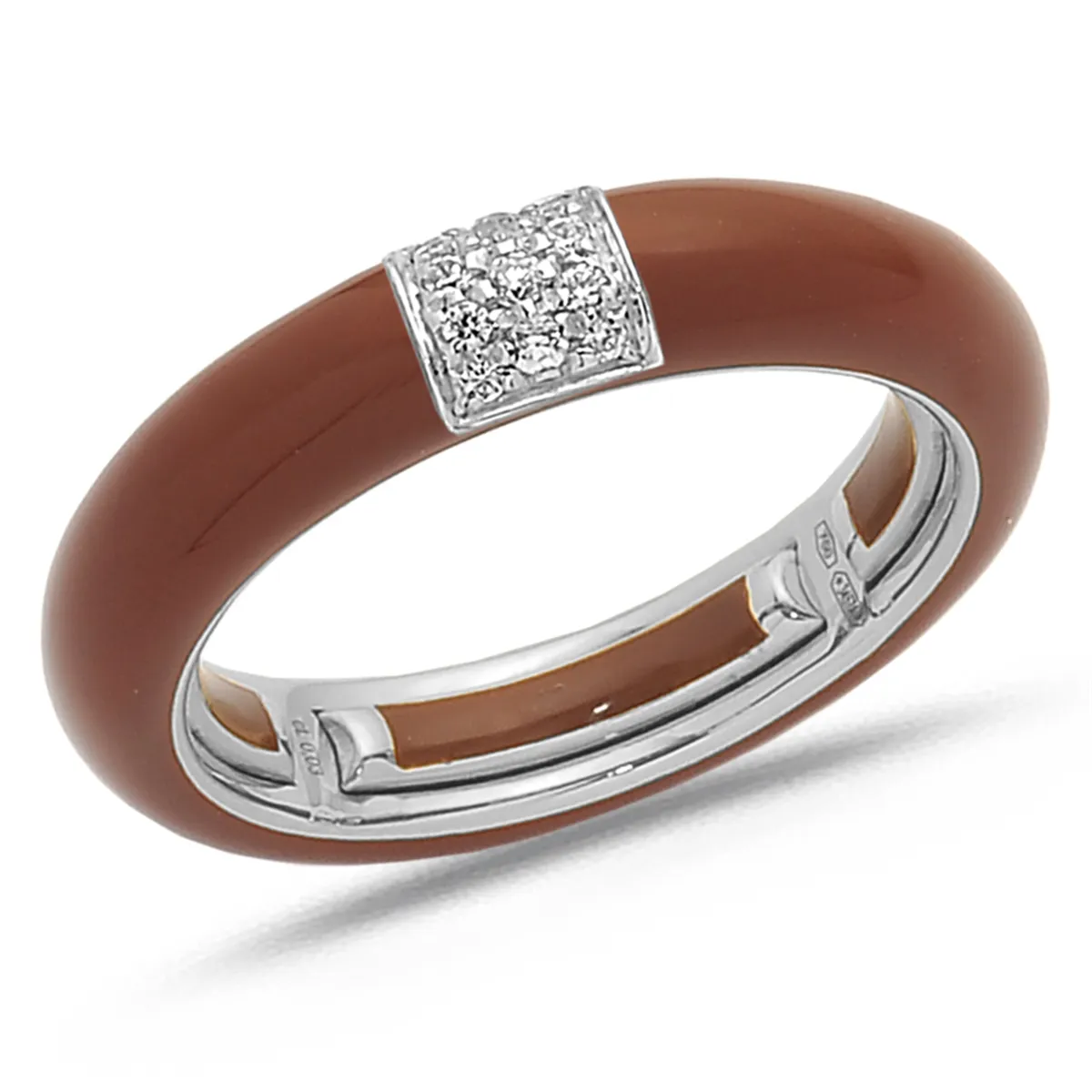 Bague Émail Marron sertie de Diamants 0.08ct. en Or 750 mill. Blanc