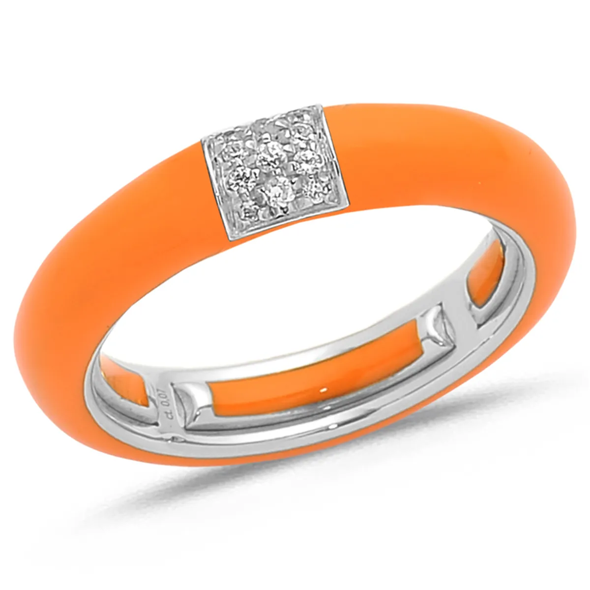 Bague Émail Orange sertie de Diamants 0.08ct. en Or 750 mill. Blanc