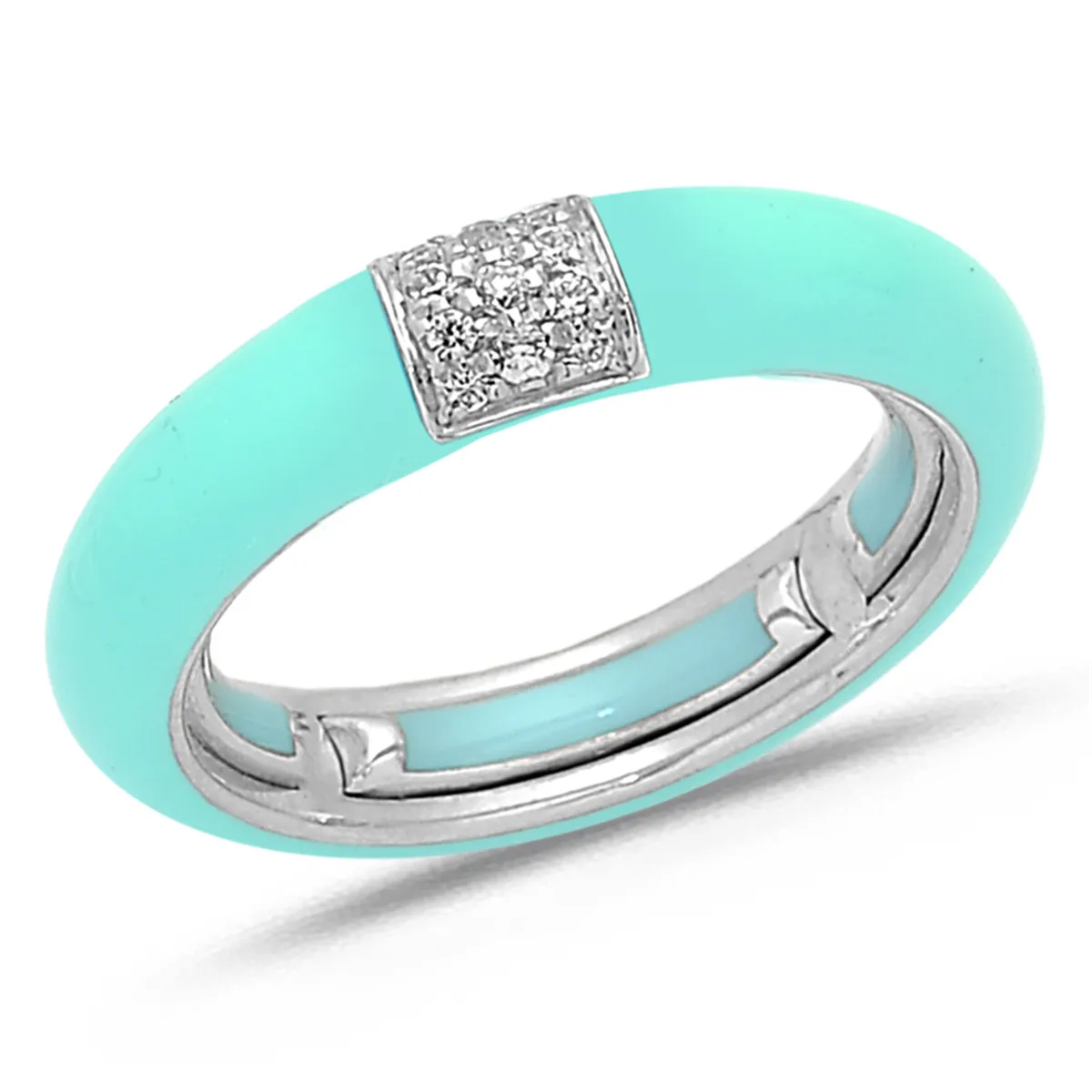 Bague Émail Bleu Clair sertie de Diamants 0.08ct. en Or 750 mill. Blanc