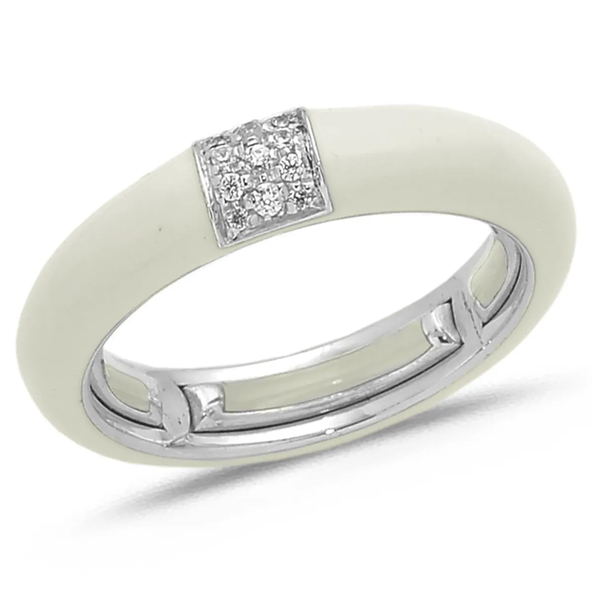 Bague Émail Ivoire sertie de Diamants 0.08ct. en Or 750 mill. Blanc