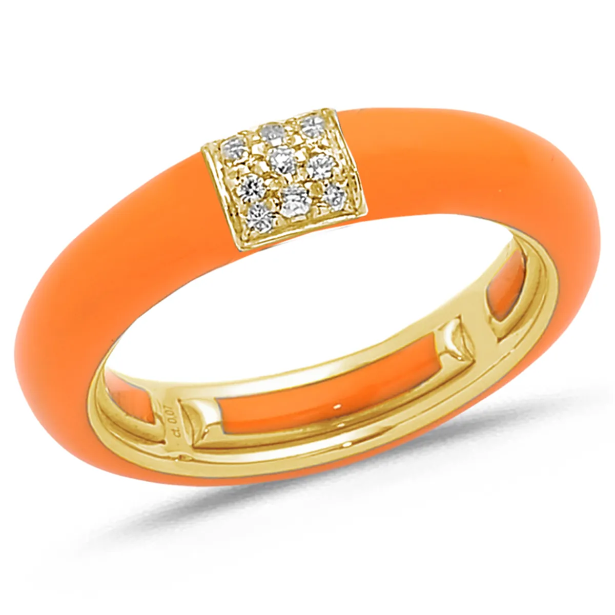 Bague Émail Orange sertie de Diamants 0.08ct. en Or 750 mill. Jaune