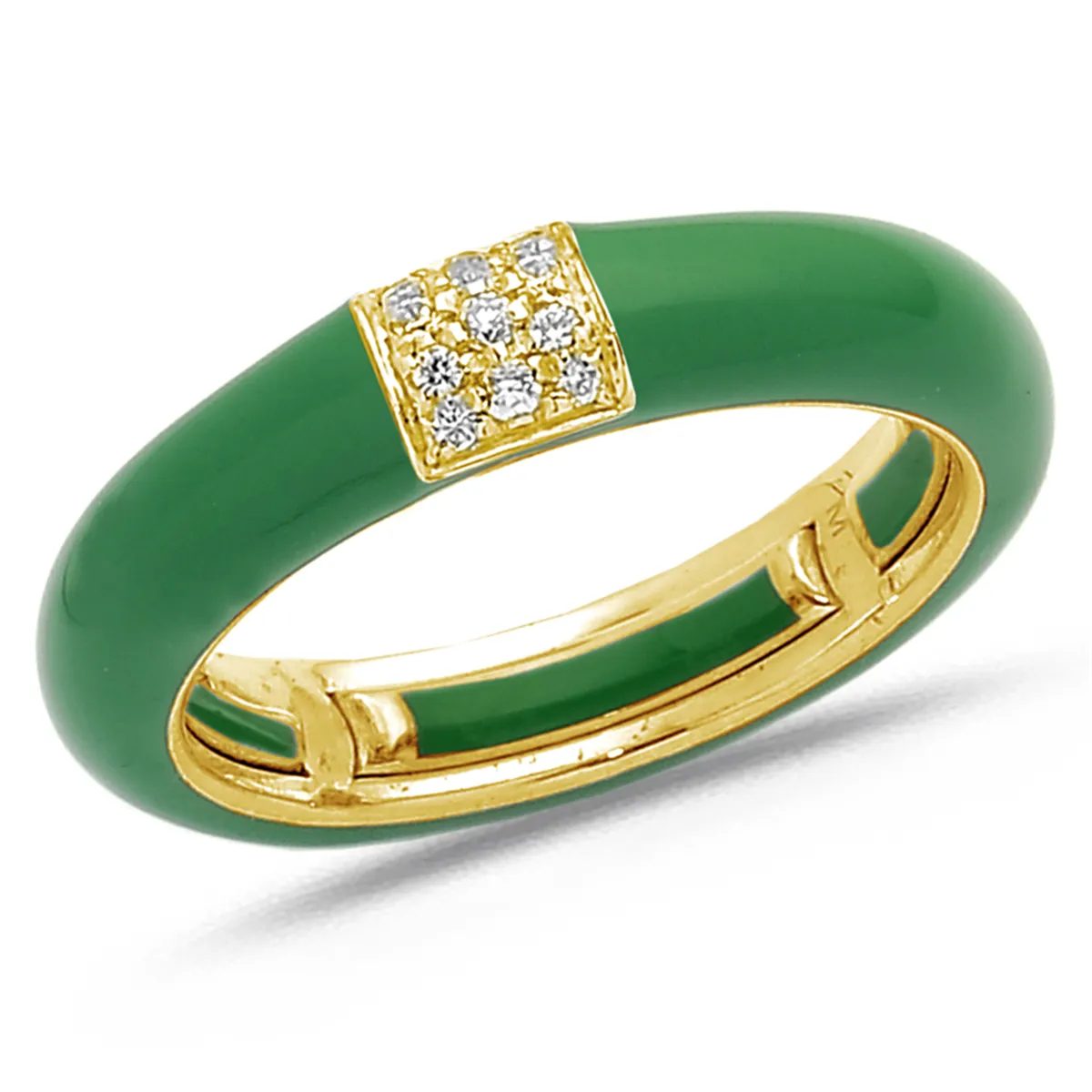 Bague Émail Vert sertie de Diamants 0.08ct. en Or 750 mill. Jaune