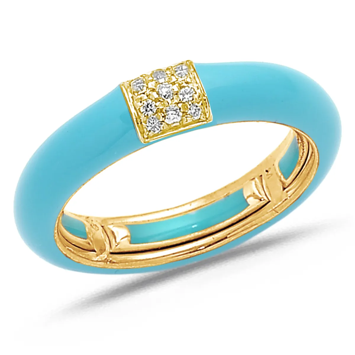 Bague Émail Bleu clair sertie de Diamants 0.08ct. en Or 750 mill. Jaune