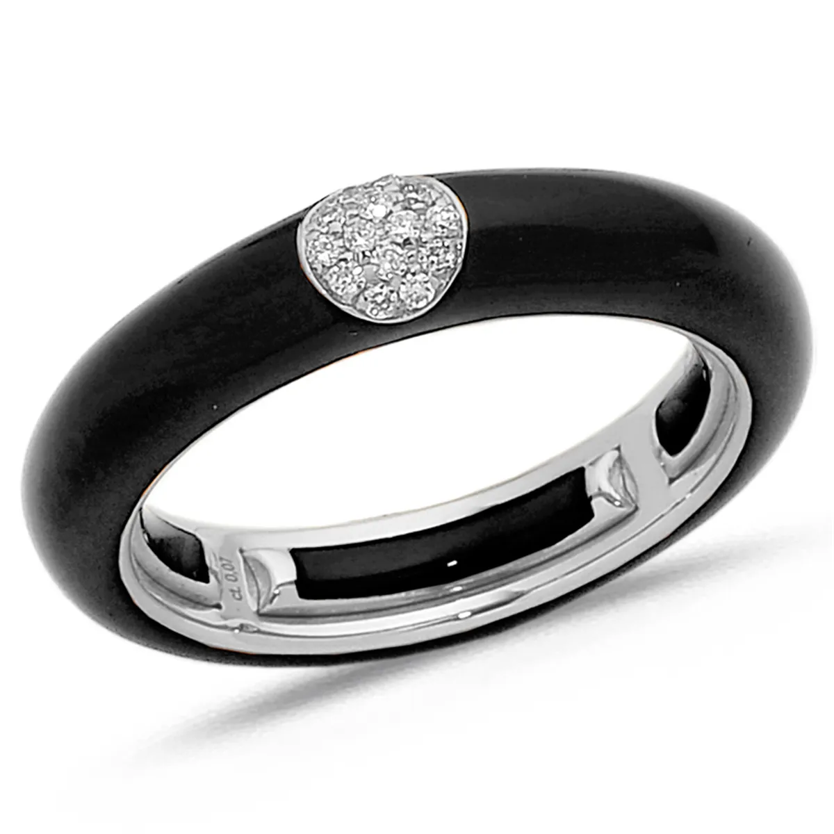 Bague Émail Noir sertie de Diamants 0.07ct. en Or 750 mill. Blanc