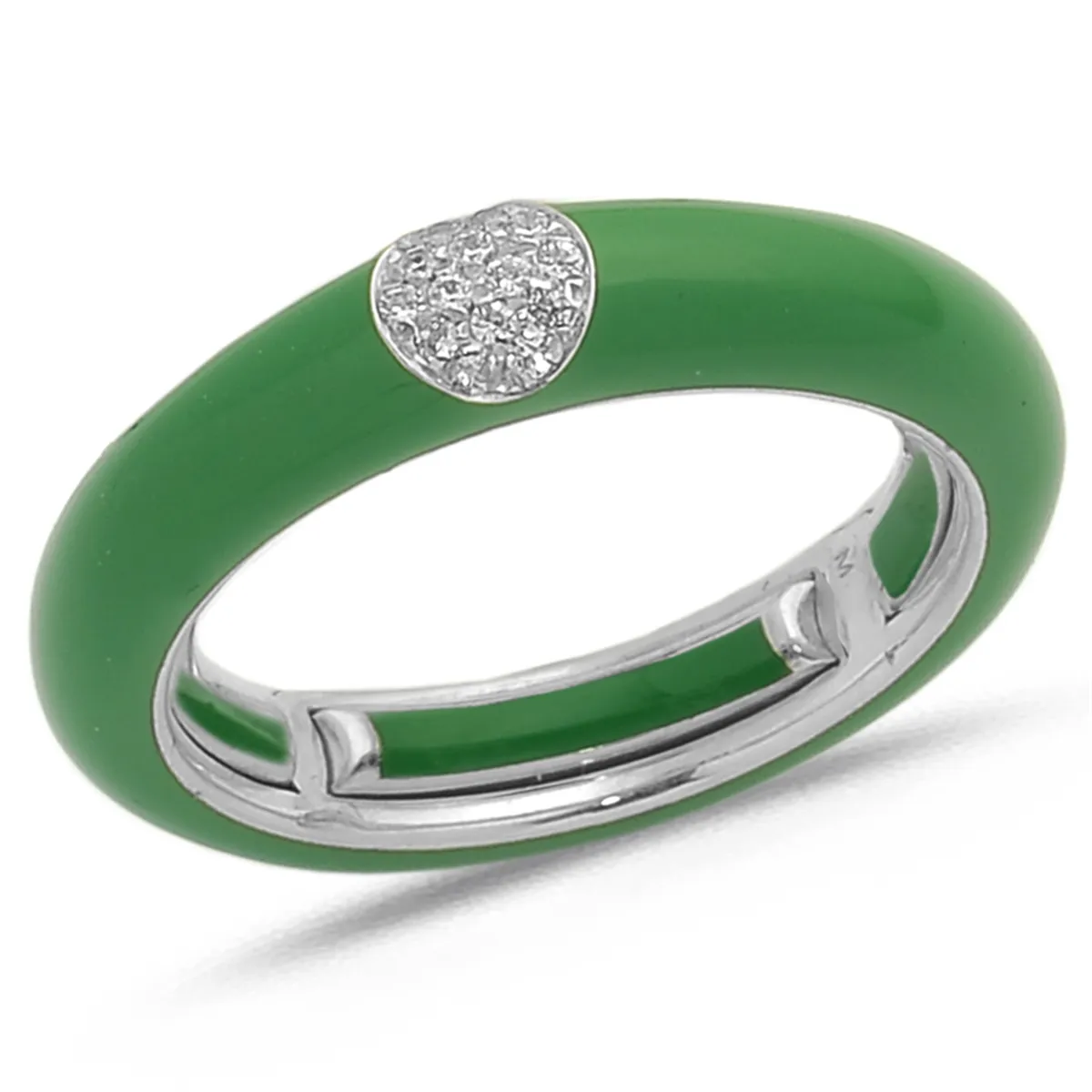 Bague Émail Vert sertie de Diamants 0.07ct. en Or 750 mill. Blanc