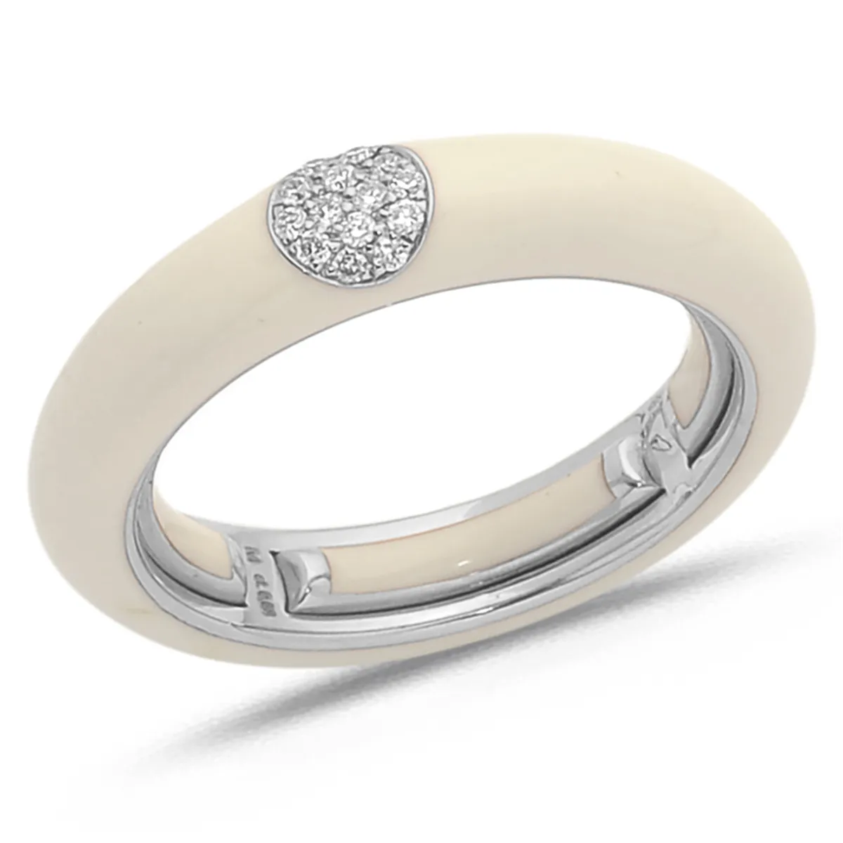 Bague Émail Ivoire sertie de Diamants 0.07ct. en Or 750 mill. Blanc