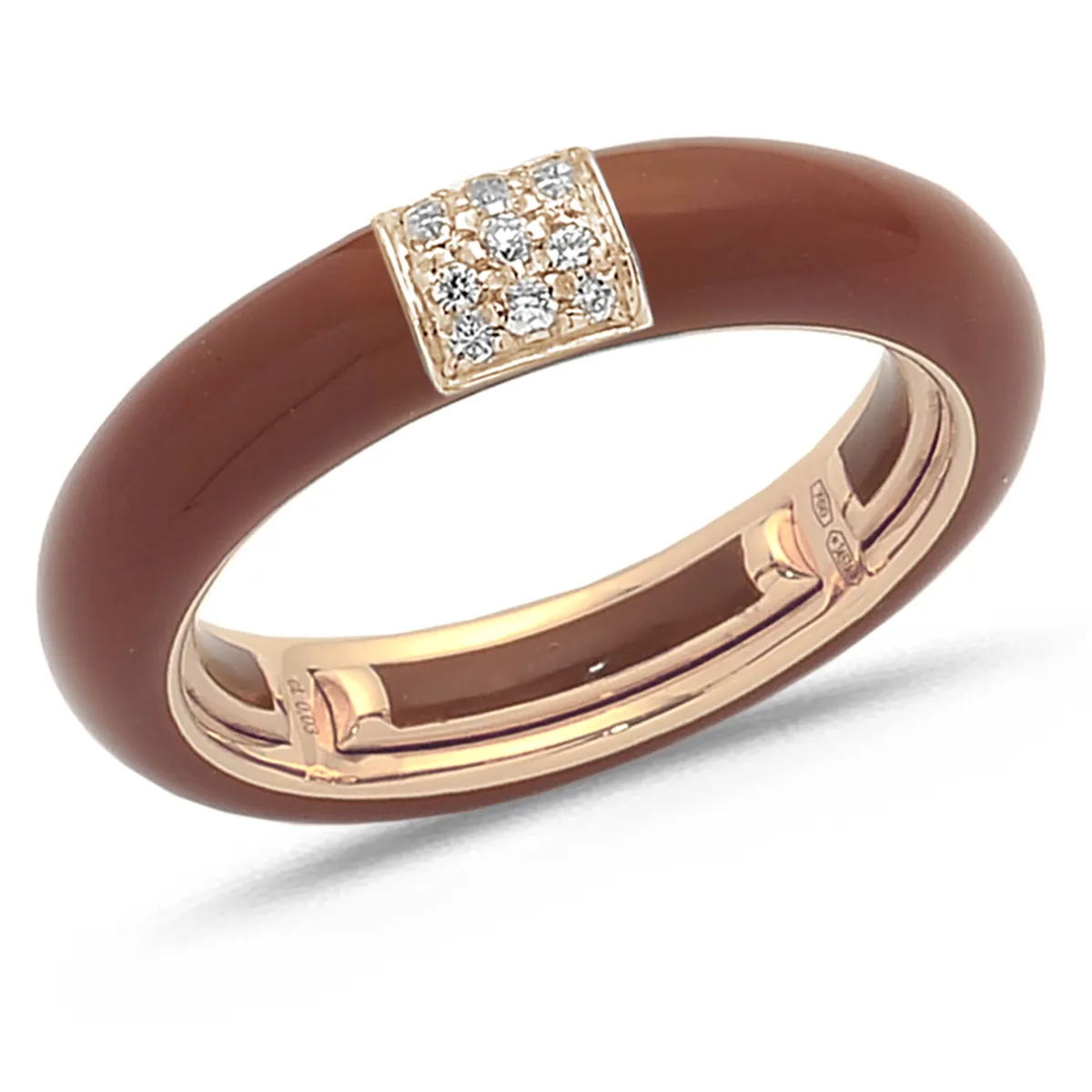 Bague Émail Marron sertie de Diamants 0.08ct. en Or 750 mill. Rose