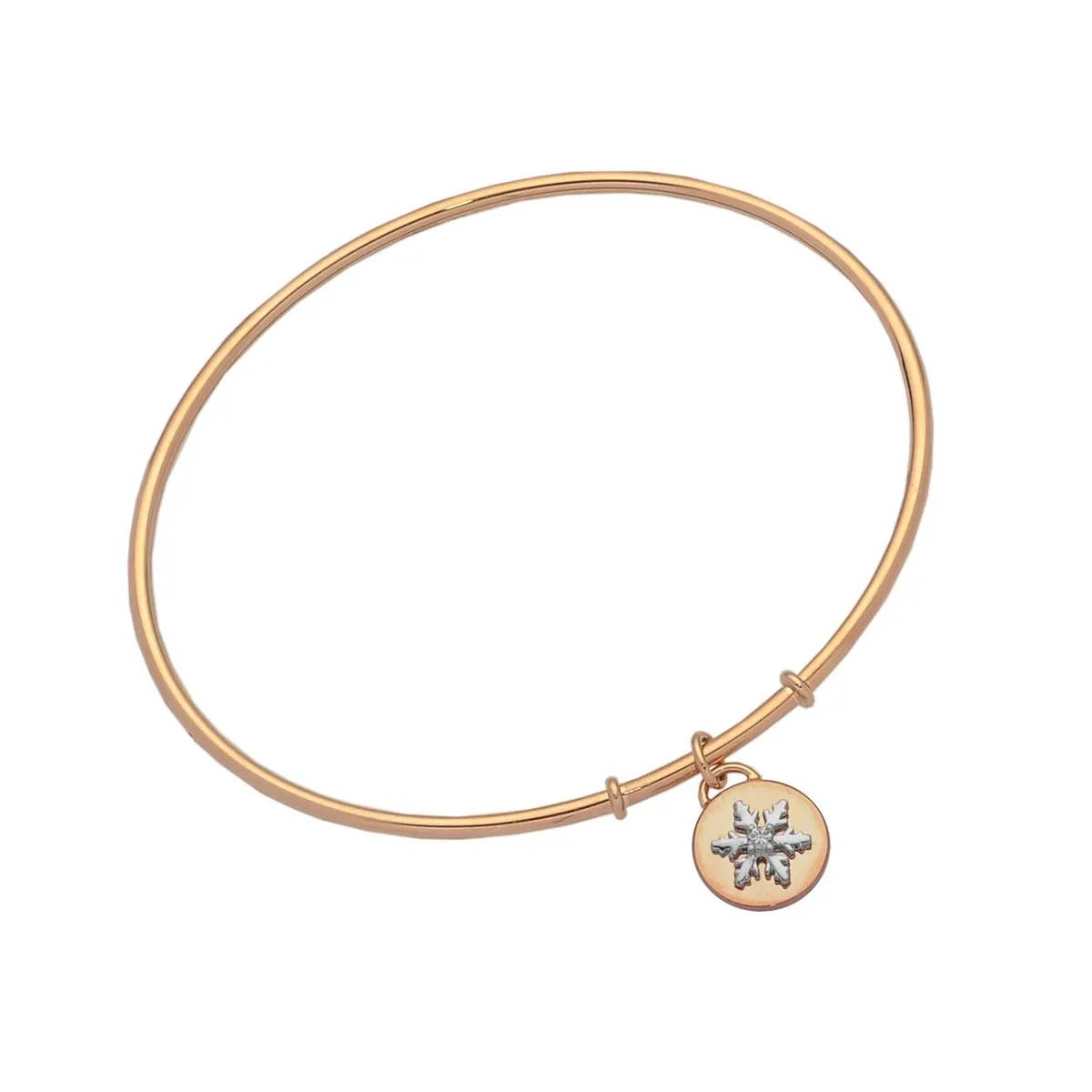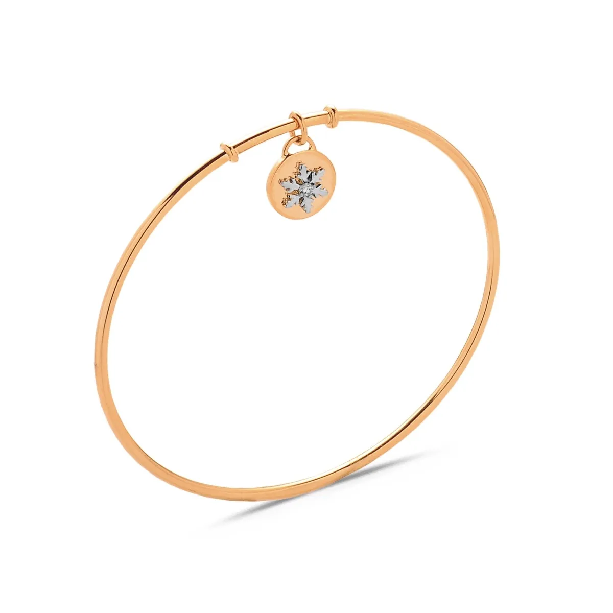 Le bracelet jonc personnalisable Flocons d'Amour en or  750 mill. serti d'un diamant naturel, associe éclat, finesse et élégance intemporelle.