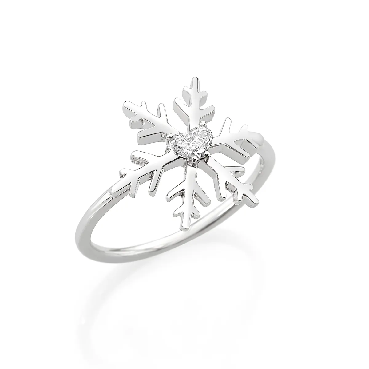 La bague Flocons d’Amour en or 750 mill. sertie d'un diamant naturel en forme de coeur, séduit par son design délicat inspiré de la montagne. Raffinée et intemporelle, elle apporte une touche poétique et élégante à la main.