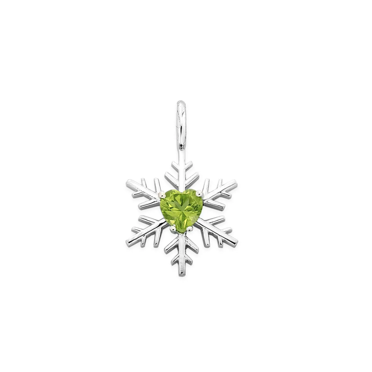 Pendentif Flocon d'Amour en or blanc 750 mm avec peridot en forme de cœur de 5 mm.