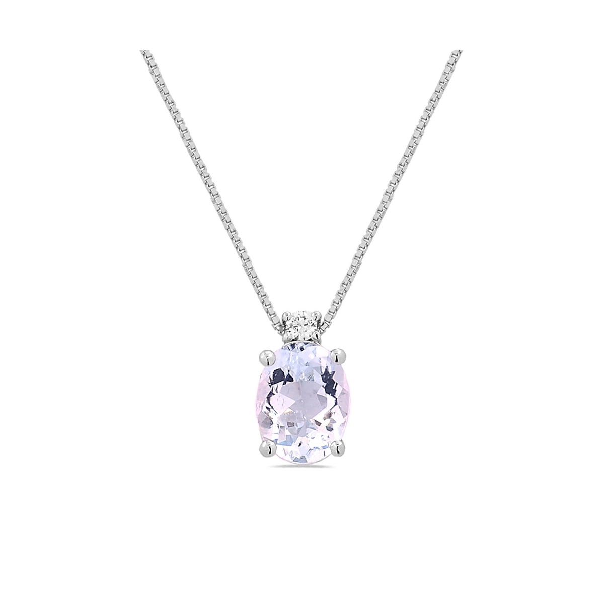 Collier pierres fines Or blanc 750 Aigue Marine 1 ct ovale, 0,03 ct diamant