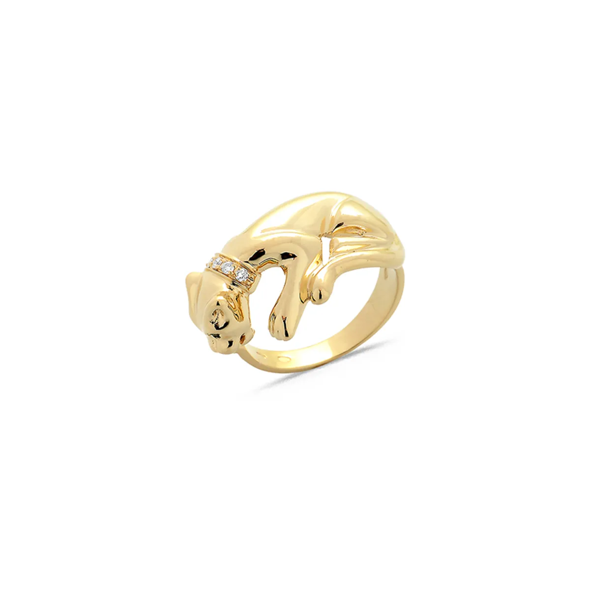 Bague Féline Émeraudes 0.02ct et Diamants 0.06ct en Or Jaune 750 mill.