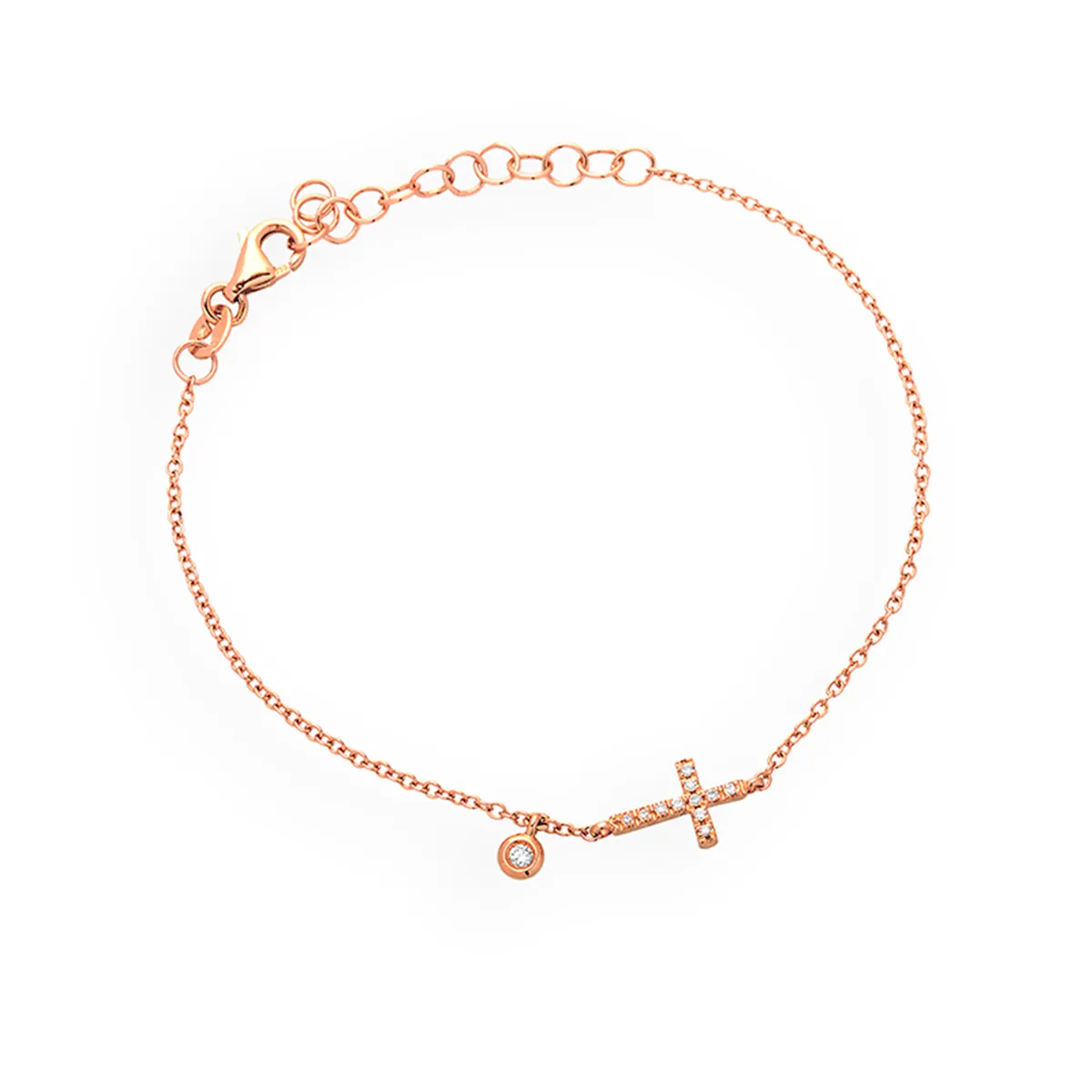 Bracelet La Délicatesse Croix Diamants 0.07ct en Or Rose 750 mill.
