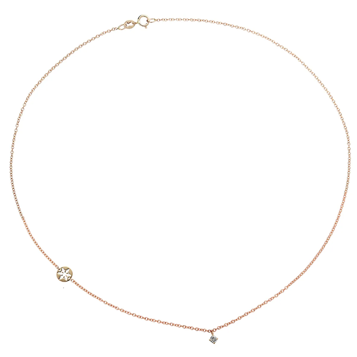 Collier La Délicatesse Diamant 0.05ct Chaine Motif Flocon en Or Rose 750 mill. 40cm