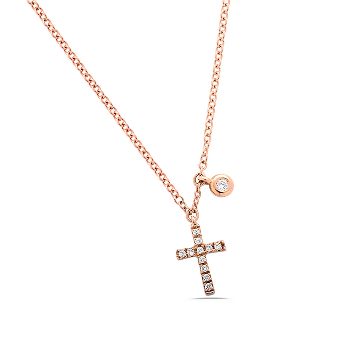 Collier La Délicatesse Croix Diamants 0.06ct en Or Rose 750 mill.